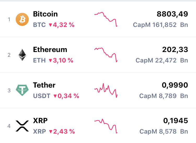 Si el precio de Bitcoin se recupera en el corto plazo por debajo de la región de 9,000 dólares y vuelve a visitar los 8,800 dólares, aumenta la probabilidad de que BTC vea una corrección mucho mayor al rango de 6,000 dólares a 7,000 dólares.
